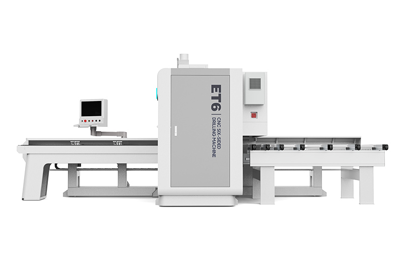 數(shù)控六面鉆主要用于板式家具三合一工藝孔、水平拉槽,切割異形等。