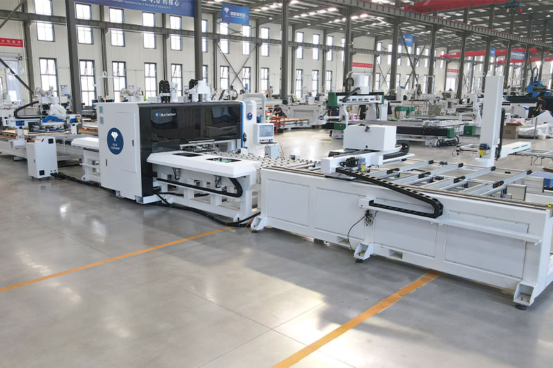 一拖二貼標(biāo)鉆切單元是一套自動化程度比較高的數(shù)控開料解決方案。由三工位龍門上料、自動貼標(biāo)機、雙鉆包六面鉆、兩臺全自動數(shù)控開料機以及動力滾筒線、中控系統(tǒng)組成。可實現(xiàn)自動上料、自動貼標(biāo)、上下孔槽及切割加工。