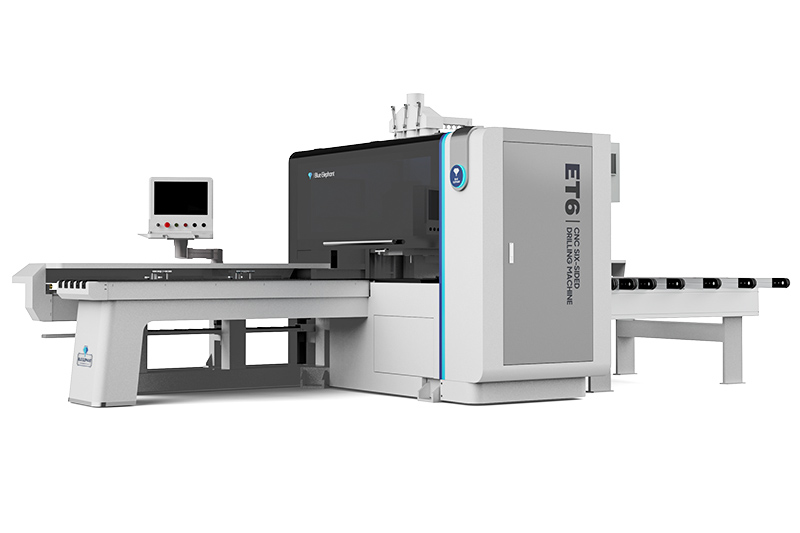 數(shù)控六面鉆主要用于板式家具三合一工藝孔、水平拉槽,切割異形等。