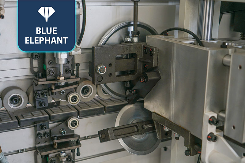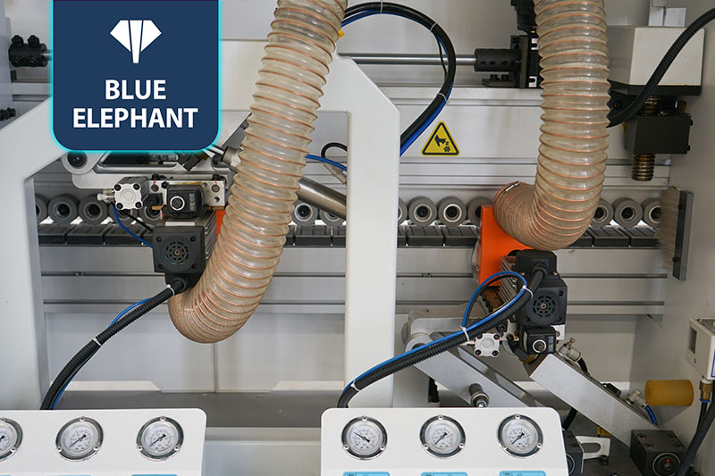 全自動(dòng)封邊機(jī)主要功能:預(yù)銑→涂膠→齊頭齊尾→粗修→精修→仿形跟蹤→雙刮邊→雙拋光。