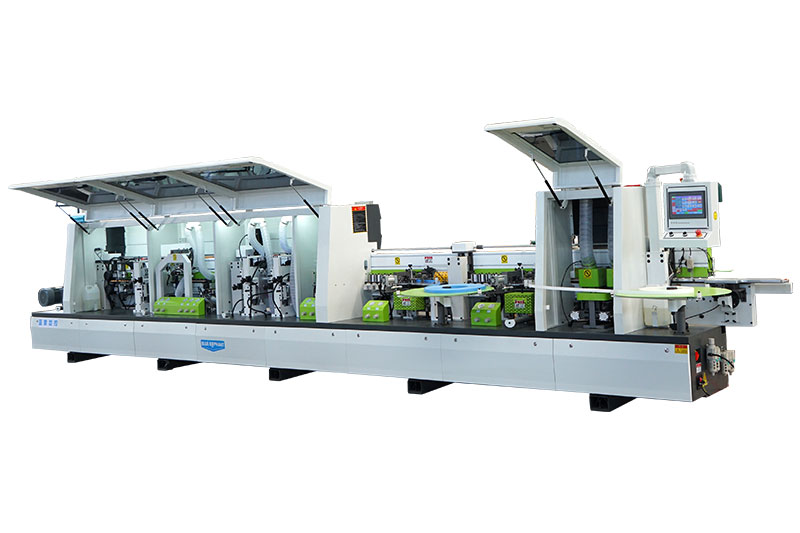 主要功能:預(yù)銑-涂膠貼邊1-六輪壓貼-烤燈1-涂膠貼邊2-六輪壓貼-烤燈2-前后齊頭-精修1-精修2-跟蹤修邊-氣動(dòng)刮邊-平刮-氣動(dòng)拋光1-氣動(dòng)拋光2-屏幕一鍵控制前后清洗。