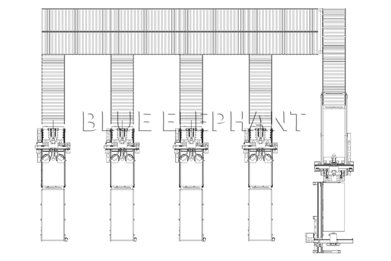 一托四模壓門板生產(chǎn)線組成:貼標(biāo)機(jī)、自動上下料齒條開料機(jī) 、動力輥筒線、翻板機(jī)、自動上下料絲杠機(jī)